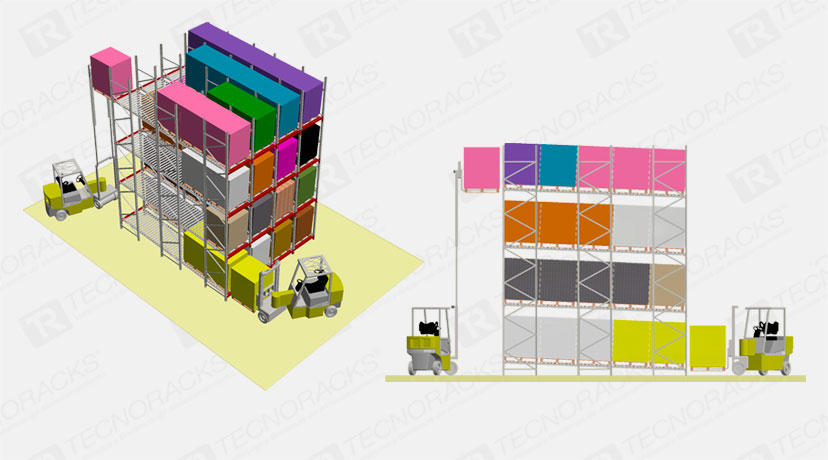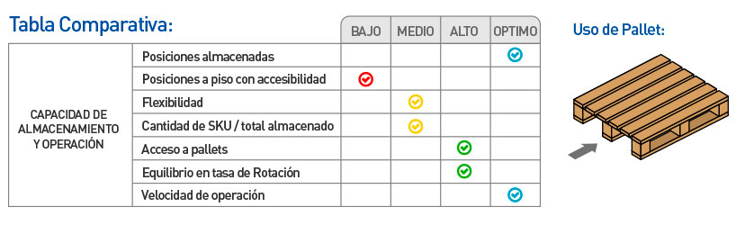 Ubicado en los niveles inferiores el pallets puede ser retirado con transpaletas a nivel de piso.