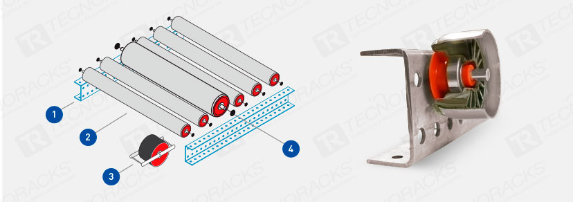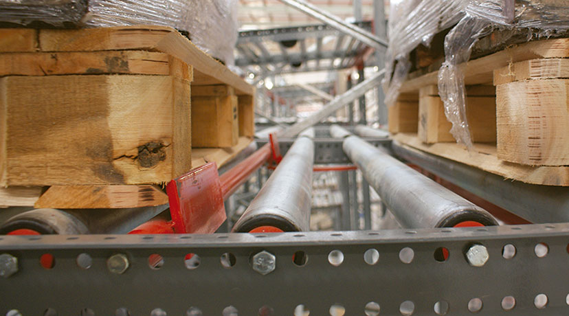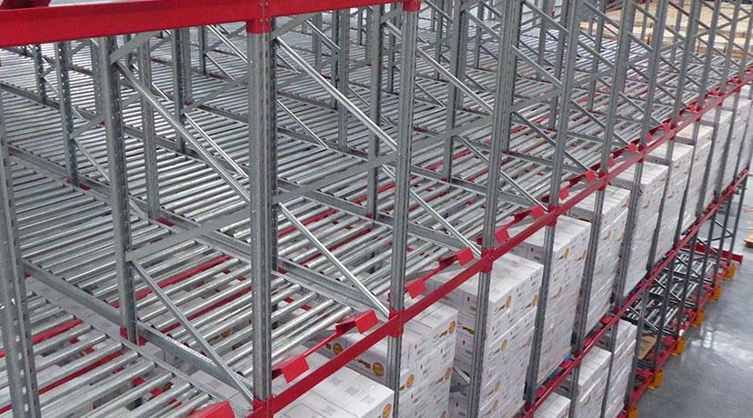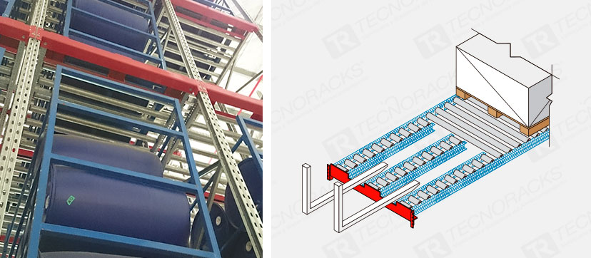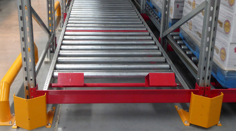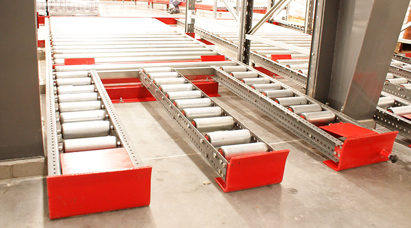 Los pallets son cargados sobre cunas de rodillos ligeramente inclinados y por la fuerza de gravedad se desplazan desde el lado de carga, hasta el lado de descarga. cuando un pallet es retirado, el resto se desplaza utomáticamente hacia el lado de descarga, garantizando así el ciclo de rotación FIFO.