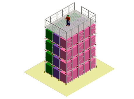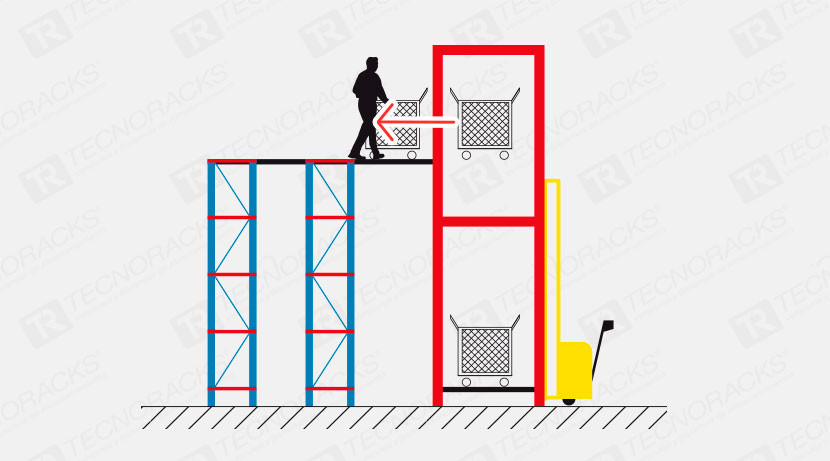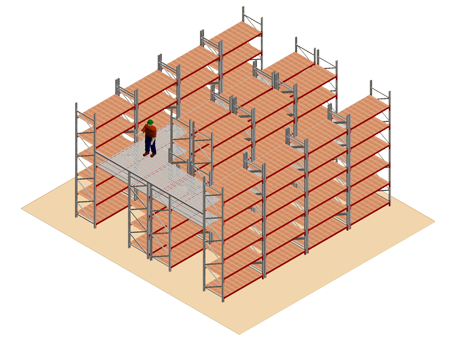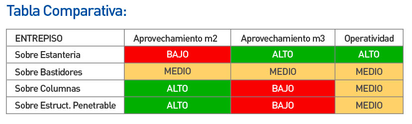 Se utiliza como soporte del entrepiso las estructuras de almacenamiento. Se optimiza al máximo los m2 de circulación y de almacenamiento. Se logran grandes alturas. Una estructura existente puede ser re- utilizada y adaptada. Los niveles de almacenamiento son fácilmente modificables.
