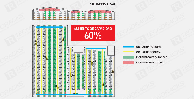 Aumentar la capacidad de almacenamiento en un 60% logrando 4420 posiciones.